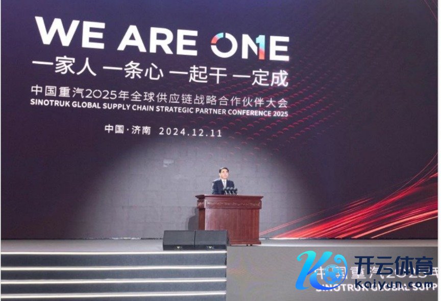 12月11日开云kaiyun,以“WE ARE ONE——一家东谈主、一条心、沿路干、一定成”为主题的中国重汽集团2025年寰球供应链政策合作伙伴大会在山东海外会展中心举行。山东重工集团党委文牍、董事长满慎刚出席并致辞。