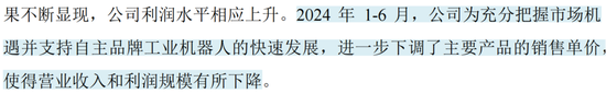 公司暗示,为充分把捏市集机遇并救济自主品牌工业机器东说念主的快速发展,上半年进一步下调了主要产物的销售单价。