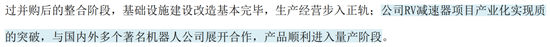 双环传动2017年年报显现,当期RV减慢器形势产业化罢了质的冲突,产物顺利进入量产阶段。