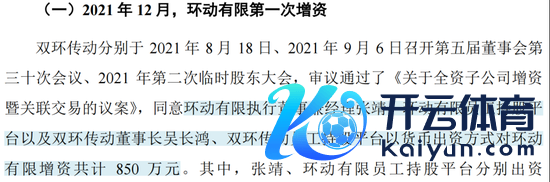2021年12月,公司进行了第一次增资,公司膨大董事张靖、双环传动董事长吴长鸿、公司职工持股平台、双环传动职工持股平台等成为新增鼓吹。