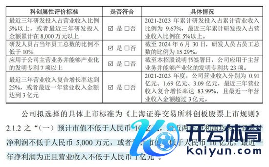 基于公司的产物特征、研发强度以及事迹发扬等情况,公司扫数适当科创板定位和科创属性,同期也满足所选上市尺度。
