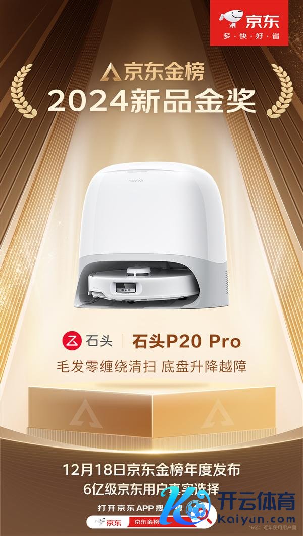 快科技12月19日音书,一年一度的京东金榜日前认真发布,石头扫地机P20 Pro获评京东2024新品金奖。