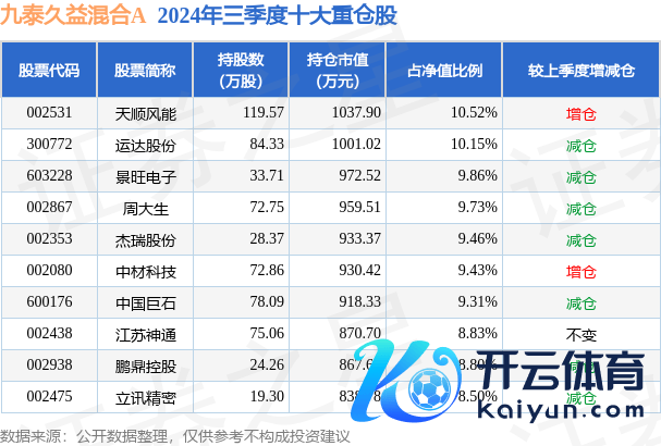 九泰久益羼杂A为羼杂型-天真基金,字据最新一期基金季报透露,该基金钞票确立:股票占净值比94.72%,无债券类钞票,现款占净值比5.57%。基金十大重仓股如下: