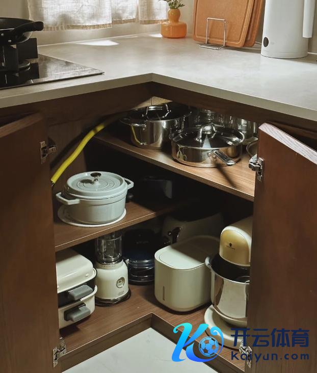 许多的小伙伴就会把橱柜的转角作念旋转架的筹备,不错容纳更多的东西,同期也更好拿取,可事实上,旋转架的筹备除了让你多费钱以外,极少都不好用。