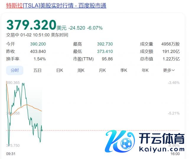 1 月 2 日晚间,好意思股开门红开云kaiyun体育,主要股指连跌四日后反弹,说念琼斯指数涨超 100 点,纳斯达克指数、标普 500 指数均飞腾。但是,特斯拉股价却遭受闪崩。