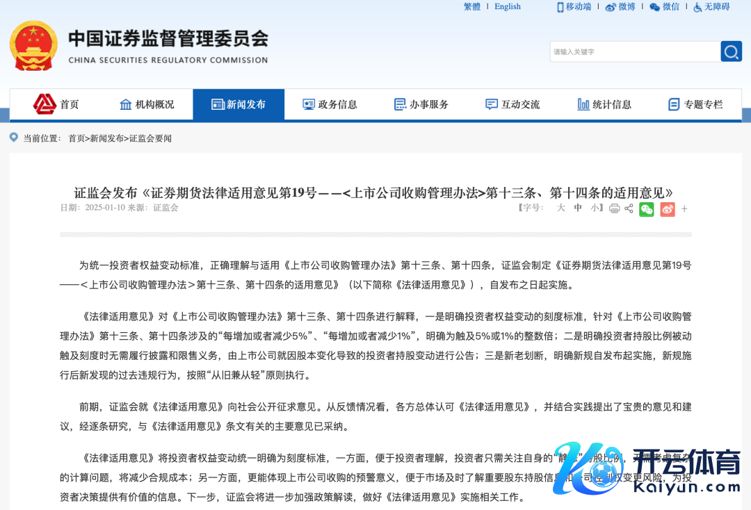 证监会1月10日音书,为救济投资者职权变动程序,正确默契与适用《上市公司收购处置目标》(以下简称《收购目标》)第十三条、第十四条,证监会制定《证券期货法律适宅心见第19号——〈上市公司收购处置目标〉第十三条、第十四条的适宅心见》(以下简称《法律适宅心见》),自愿布之日起实施。