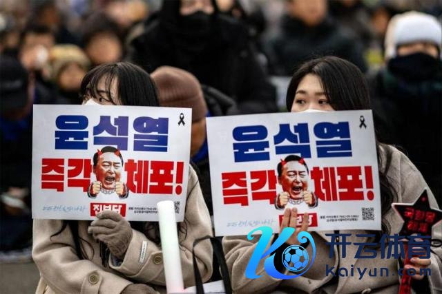 1 月 4 日,首尔的抗议行为中,韩国环球举着"立即逮捕尹锡悦"的口号牌。 《南华早报》